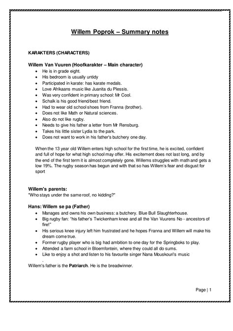 Read Online Afrikaans Willem Poprok Summary Notes Kindle Editon Gutenberg